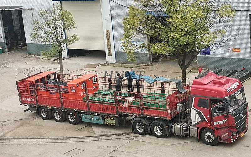 客户采购了4套双驾驶室蓄电池湘潭电机车,装满了2辆大卡车。